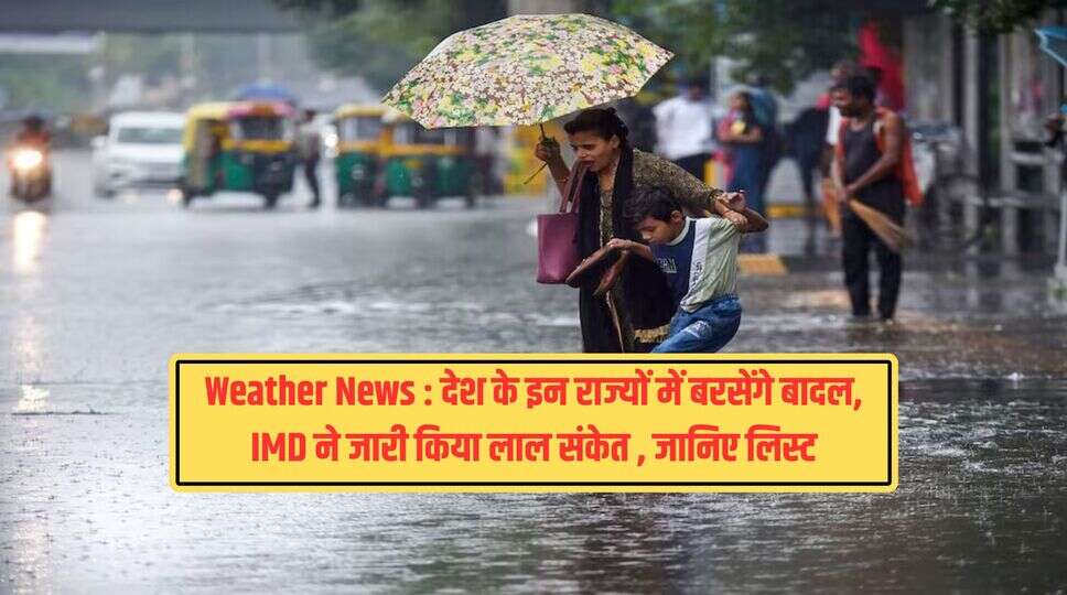 Weather News : देश के इन राज्यों में बरसेंगे बादल, IMD ने जारी किया लाल संकेत , जानिए लिस्ट