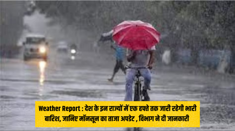 Weather Report : देश के इन राज्यों में एक हफ्ते तक जारी रहेगी भारी बारिश, जानिए मॉनसून का ताजा अपडेट , विभाग ने दी जानकारी