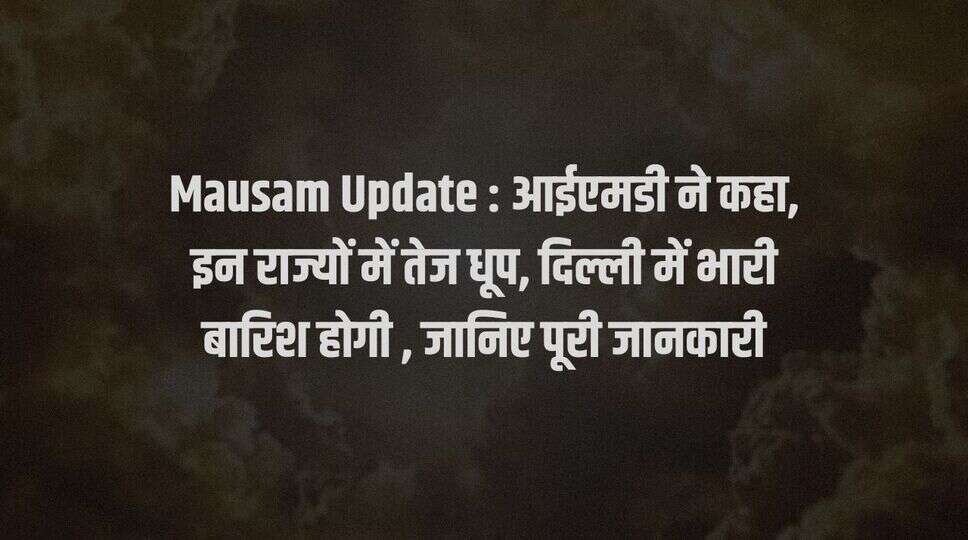 Mausam Update : आईएमडी ने कहा, इन राज्यों में तेज धूप, दिल्ली में भारी बारिश होगी , जानिए पूरी जानकारी