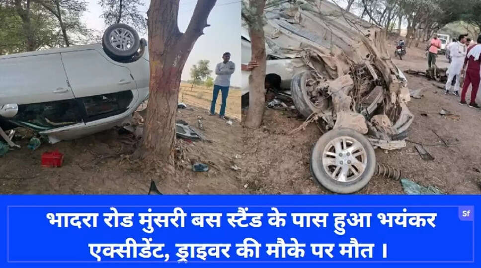 भादरा गोगामेड़ी रोड मुंसरी बस स्टैंड के पास हुआ भयंकर एक्सीडेंट, ड्राइवर की मौके पर मौत ।