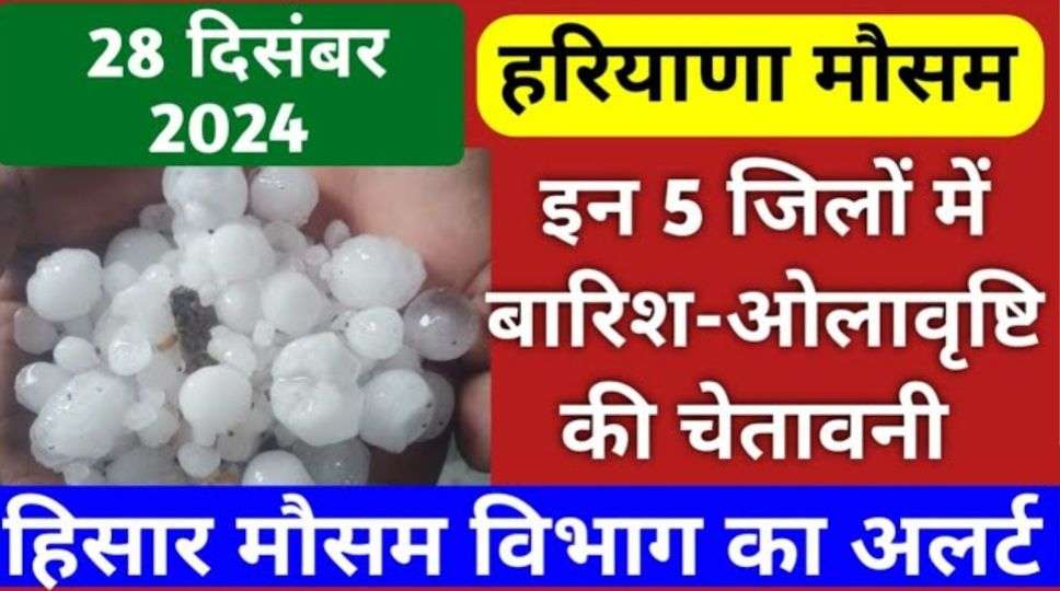 हरियाणा में मौसम का मिजाज एक बार फिर बदल गया है। मौसम विभाग ने राज्य के पांच जिलों में बारिश और ओलावृष्टि का अलर्ट जारी किया है। वहीं, 19 जिलों में कोहरे का यलो अलर्ट दिया गया है।