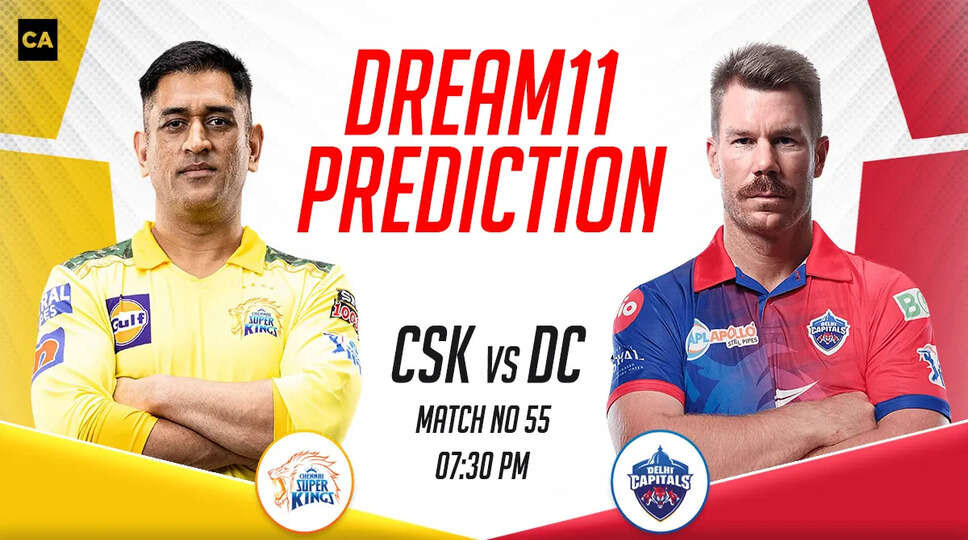 आईपीएल 2023 का 55वां मुकाबला चेन्नई सुपर किंग्स (CSK) और दिल्ली कैपिटल्स (DC) के बीच एमए. चिदंबरम स्टेडियम चेपॉक में खेला जाएगा। चेन्नई सुपर किंग्स ने पिछले मुकाबले में मुंबई इंडियंस के खिलाफ 6 विकेट से जीत हासिल की थी। और अच्छी लय में चल रही है