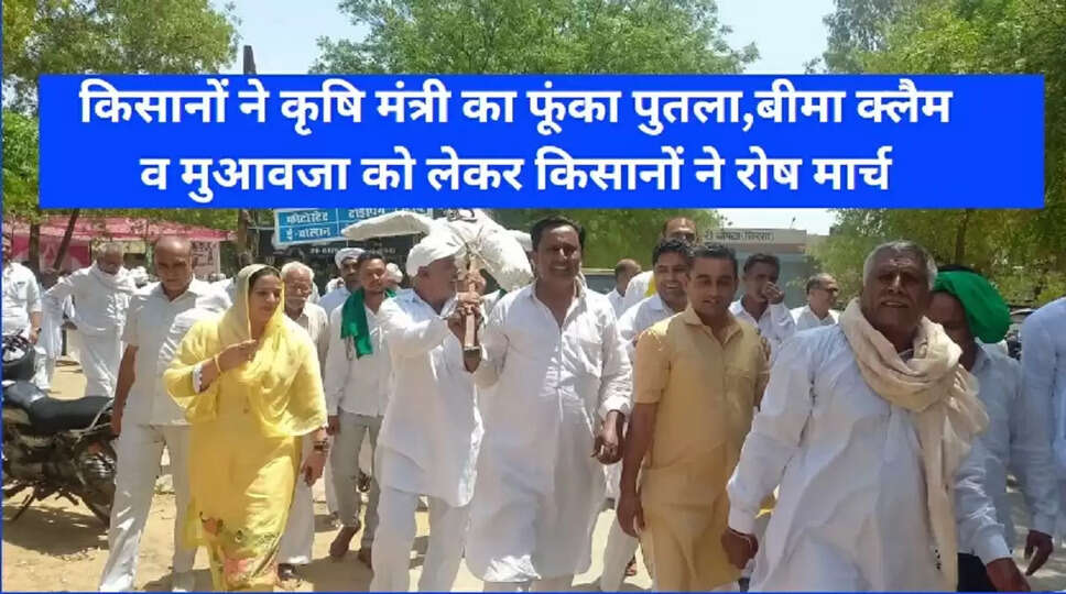 किसानों ने कृषि मंत्री का फूंका पुतला,बीमा क्लैम व मुआवजा को लेकर किसानों ने रोष मार्च