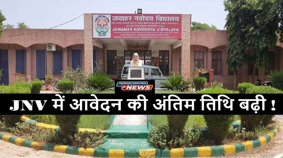 उपायुक्त एवं पीएम श्री जवाहर नवोदय विद्यालय, खारा खेड़ी की अध्यक्ष मनदीप कौर ने बताया हैं कि जेएनवी खारा खेड़ी में शैक्षणिक सत्र 2026-27 के लिए कक्षा 6 में प्रवेश हेतु आयोजित होने वाली जवाहर नवोदय विद्यालय चयन परीक्षा 2026 के ऑनलाइन आवेदन की अंतिम तिथि बढ़ा दी गई है। अब अभ्यर्थी 13 अगस्त तक आवेदन कर सकते हैं।