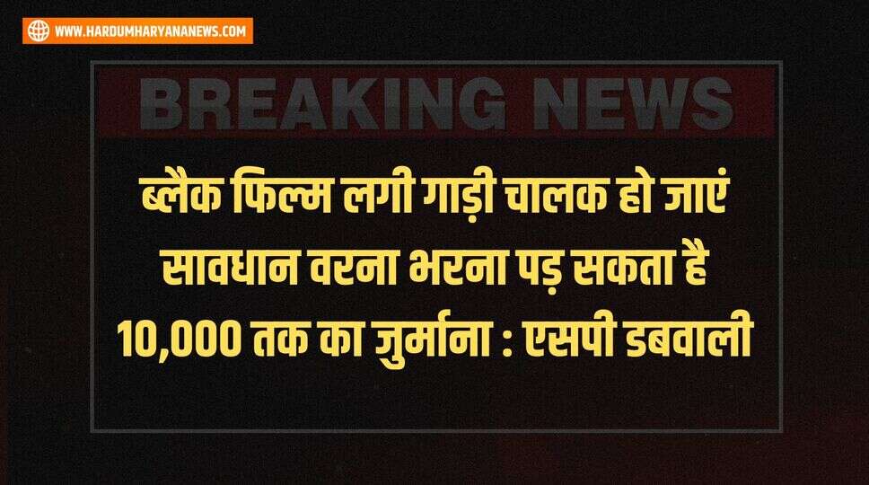 डबवाली अप्रैल 01, पुलिस महानिदेशक हरियाणा श्री शत्रुजीत कपूर के आदेश अनुसार हरियाणा पुलिस द्वारा 1 अप्रैल से 7 अप्रैल तक ब्लैक फिल्म लगी गाड़ियों के विरुद्ध एक विशेष अभियान चलाया जाएगा जिस दौरान अगर कोई ब्लैक फिल्म लगी गाड़ी मिलती है तो उसके खिलाफ चालानी कार्रवाई की जाएगी जिसमें 10000 तक का जुर्माना लग सकता है। आदेशों की अनुपालना में एसपी डबवाली के मार्गदर्शन में डबवाली पुलिस द्वारा भी ऐसे वाहन चालकों पर शिकंजा कसा जाएगा।