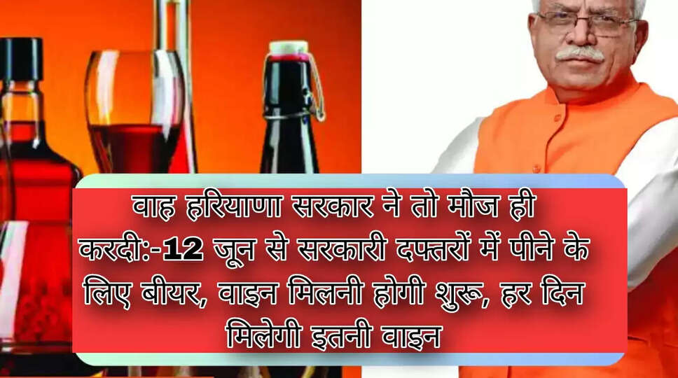 वाह हरियाणा सरकार ने तो मौज ही करदी:-12 जून से सरकारी दफ्तरों में पीने के लिए बीयर, वाइन मिलनी होगी शुरू, हर दिन मिलेगी इतनी वाइन