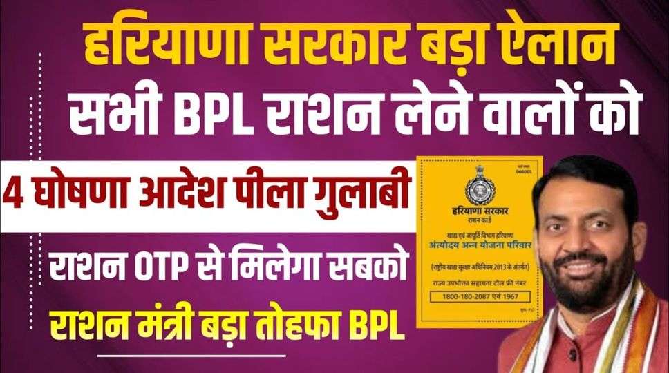 हरियाणा सरकार 4 बड़े ऐलान घोषणा तोहफा आदेश BPL राशन,OTP से मिलेगा अब राशन खुशखबरी| Haryana Bpl Ration