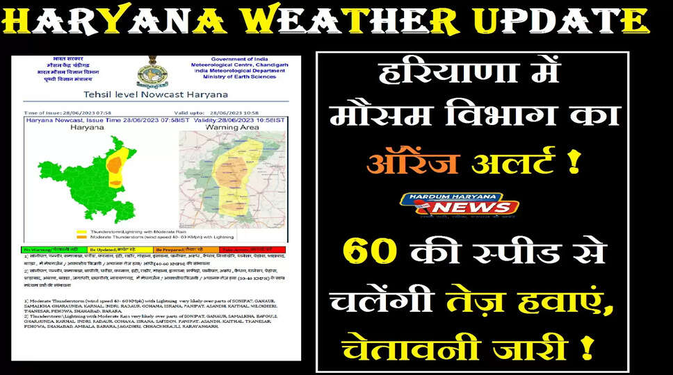 हरियाणा में मौसम विभाग का ऑरेंज अलर्ट ! 60 की स्पीड से चलेंगी तेज़ हवाएं, चेतावनी जारी !
