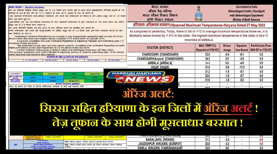 ऑरेंज अलर्ट: सिरसा सहित हरियाणा के इन जिलों में ऑरेंज अलर्ट ! इन जगहों गिर सकती है आसमानी बिजली ! तेज़ तूफान के साथ होगी मूसलाधार बरसात !