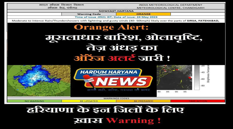 Orange Alert: मूसलाधार बारिश, ओलावृष्टि, तेज़ अंधड़ का ऑरेंज अलर्ट जारी ! हरियाणा के इन जिलों के लिए ख़ास Warning !