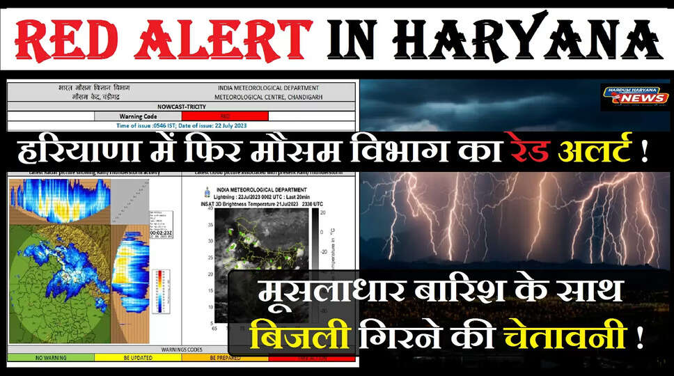 Red Alert In Haryana: हरियाणा में फिर मौसम विभाग का रेड अलर्ट ! मूसलाधार बारिश के साथ आसमानी बिजली गिरने की चेतावनी ! सुरक्षित स्थानों पर रहने के निर्देश जारी !