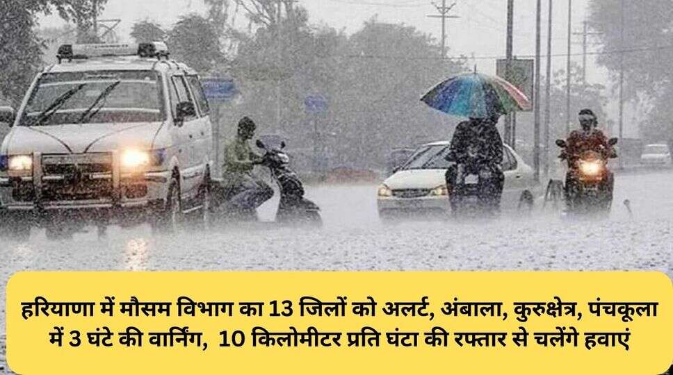 हरियाणा में मौसम विभाग का 13 जिलों को अलर्ट, अंबाला, कुरुक्षेत्र, पंचकूला में 3 घंटे की वार्निंग, 10 किलोमीटर प्रति घंटा की रफ्तार से चलेंगे हवाएं