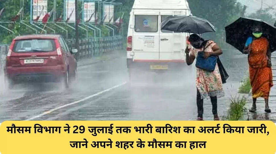 मौसम विभाग ने 29 जुलाई तक भारी बारिश का अलर्ट किया जारी, जाने अपने शहर के मौसम का हाल