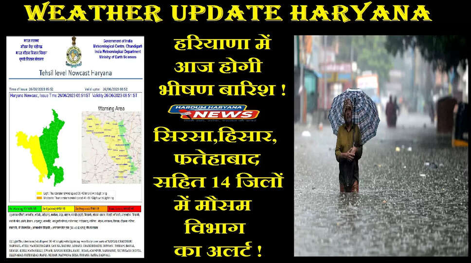 हरियाणा में आज होगी भीषण बारिश ! सिरसा,हिसार,फतेहाबाद सहित 14 जिलों में मौसम विभाग का अलर्ट ! 50 km की रफ्तार से चलेंगी तेज हवा !