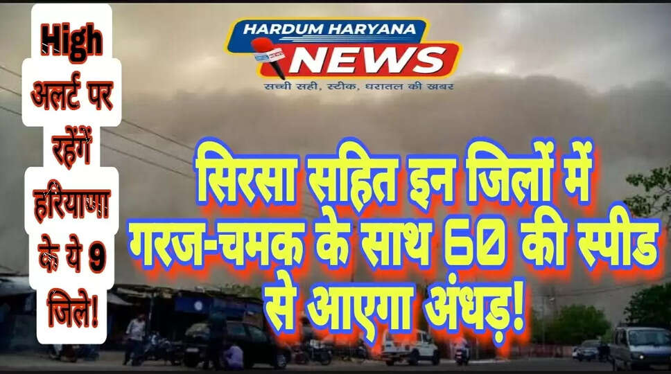 हाई अलर्ट पर रहेंगें हरियाणा के ये 9 जिले ! सिरसा सहित इन जिलों में गरज-चमक के साथ 60 की स्पीड से आएगा अंधड़ !