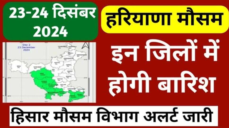 मौसम विभाग ने 23 दिसंबर को हरियाणा के कुछ जिलों में बारिश की संभावना जताई है। इनमें हिसार, भिवानी, चरखी दादरी, महेंद्रगढ़, रेवाड़ी, मेवात और पलवल शामिल हैं। इन क्षेत्रों में हल्की बारिश और बादल छाए रहने की संभावना है।