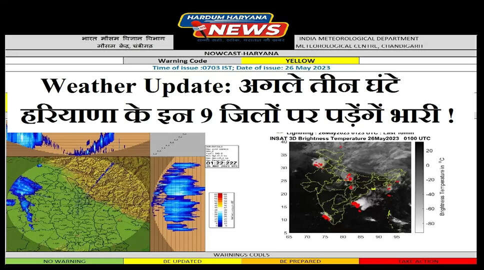 Weather Update: अगले 3 घंटे हरियाणा के इन 9 जिलों पर पड़ेंगें भारी ! तेज़ हवाओं और गरज़-चमक के होगी मूसलाधार बारिश ! मौसम विभाग ने जारी की चेतावनी !