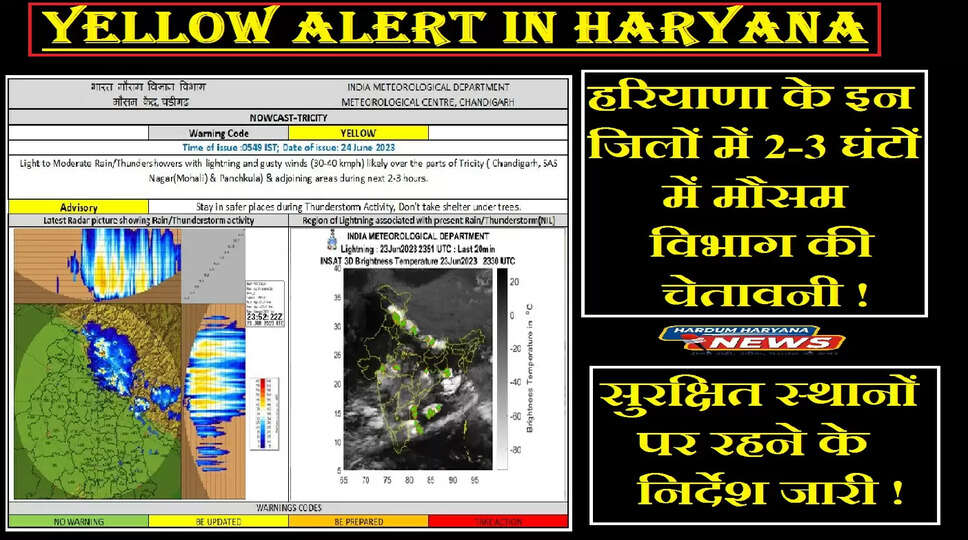 हरियाणा के इन जिलों में मौसम विभाग का येल्लो अलर्ट ! सुरक्षित स्थानों पर रहने के निर्देश जारी !